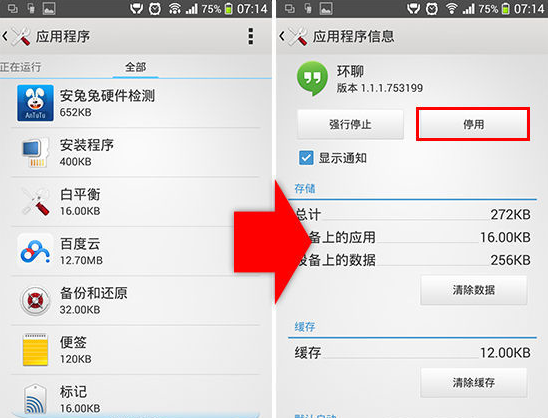 停用软件可以让软件无法运行,桌面也不会再显示图标。虽然无法根治软件对存储空间的占用问题,但是至少可以“眼不见心不烦”,手机运行速度也会更快。