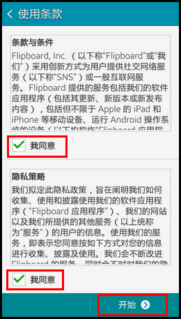 3. 阅读使用条款,将“我同意”打钩,然后点击右下方的【开始】。