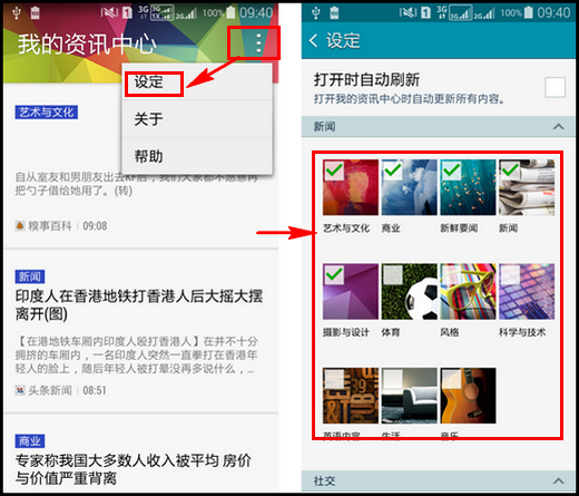 提示:如果您想选择接收资讯的类别,请点击右上角【菜单】,再选择【设定】,然后勾选您需要的类别即可