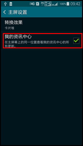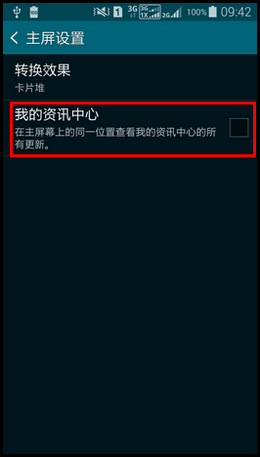 如果您不想在主屏的板面上显示我的资讯中心,可以通过以下方法取消: