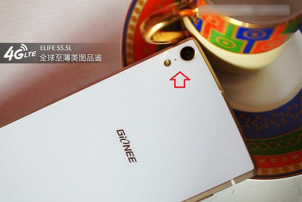 而上一代金立S5.5背面后置摄像头是凸起的,并且机身底部没有4G字样,另外背面中部的LOGO名称是竖着写的,与金立S5.5L明显不同,如下图所示: