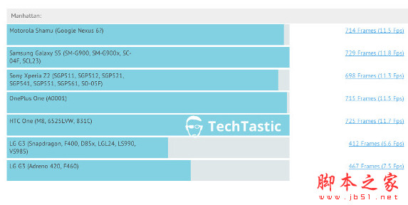 不过从得分来看,Nexus6很有可能是采用高通801处理器,因为其处理器的性能与三星Galaxy S5、索尼Xperia Z2、HTC One M8和一加手机类似。