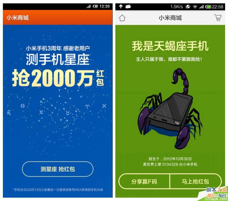5、测完手机星座,即可抢红包,最高赢1000元红包!分享你的红包到微博,赢小米手机4 F码!