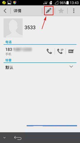 1)找到并打开华为荣耀6【联系人】,选择需设置的好友,在详情面板中点击【编辑】按钮。(如下图)