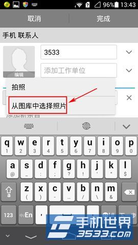 2)点击联系人【头像编辑】,选择【从图库中选择照片】。(如下图)