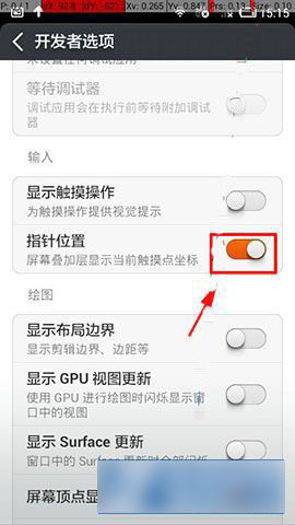 2)在开发者选项中,取消【指针位置】即可。(如下图)