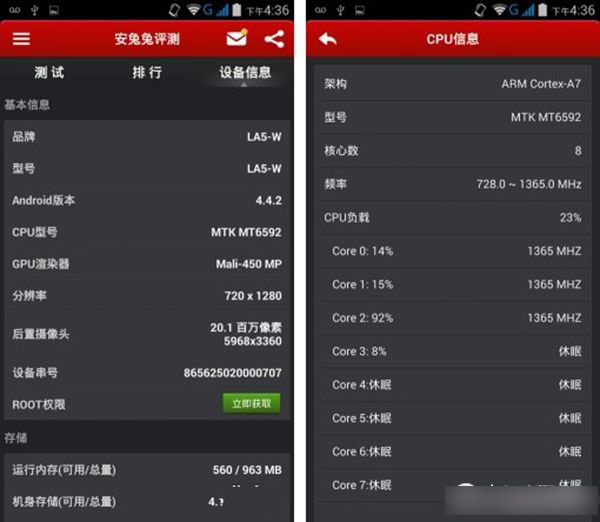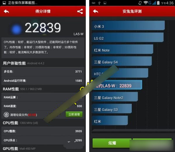 从上面小辣椒5安兔兔测试得知,小辣椒5安兔兔跑分成绩为22839分,其跑分超过了三星S3和三星Note2,分数处于中等偏上水平。性能整体来说,还是不错的,运行游戏和视频娱乐还是足够的,加上其不到1400元的价格,也是一款主打高性价比的智能手机。