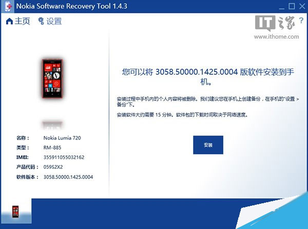 其中Lumia720、Lumia 720T固件版本为RM-885,累计下载1.43G的升级包,请确保Lumia设备刷机过程中实时用数据线连接电脑、确保WP设备电量充足。