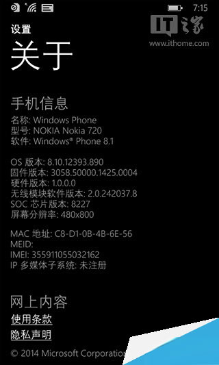 据诺基亚国际站推送页面介绍,Lumia 525固件版本号已升级至3058.50000.1425.0004,Lumia720、Lumia 720T固件分别升级至3058.50000.1425.0004和3058.50000.1424.0003(如下图)。