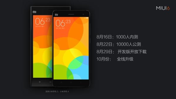 大家最关心的小米手机3移动版也将在中秋节后全面内测,MIUI在发布会上也承诺,10月份将对适配机型全线升级,小米手机3全版本与小米手机4全版本也将及时适配MIUI 6。而小米平板、小米手机2/2S/2A、红米和红米Note也将于今年年底全线测试。