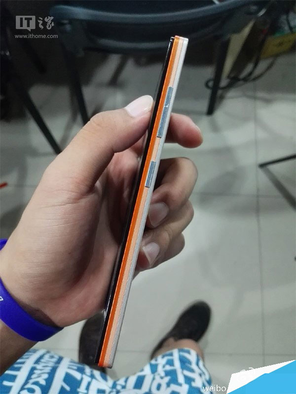 日前@老潘PLF 在微博曝出联想Vibe X2的真机照,从照片上来看,该机中框部分由银、黄、橙、黑色四种颜色依次组合而成。