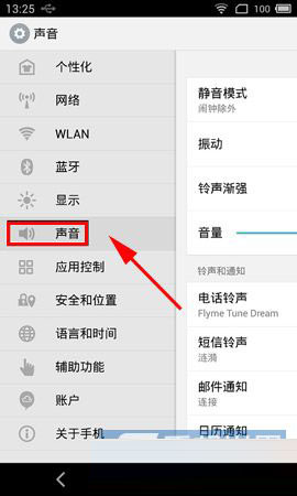 2)找到并打开魅族MX4手机【设置】打开【声音】,点击【电话铃声】。(如下图)