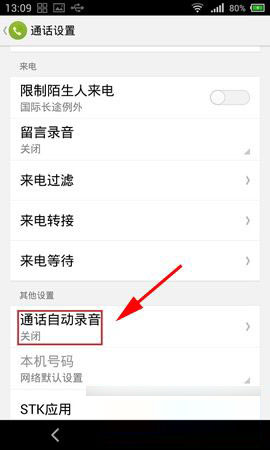 1)找到并点击魅族mx3【拨号】图标点击【三点】选择【设置】;点击【通话自动录音】。(如下图)
