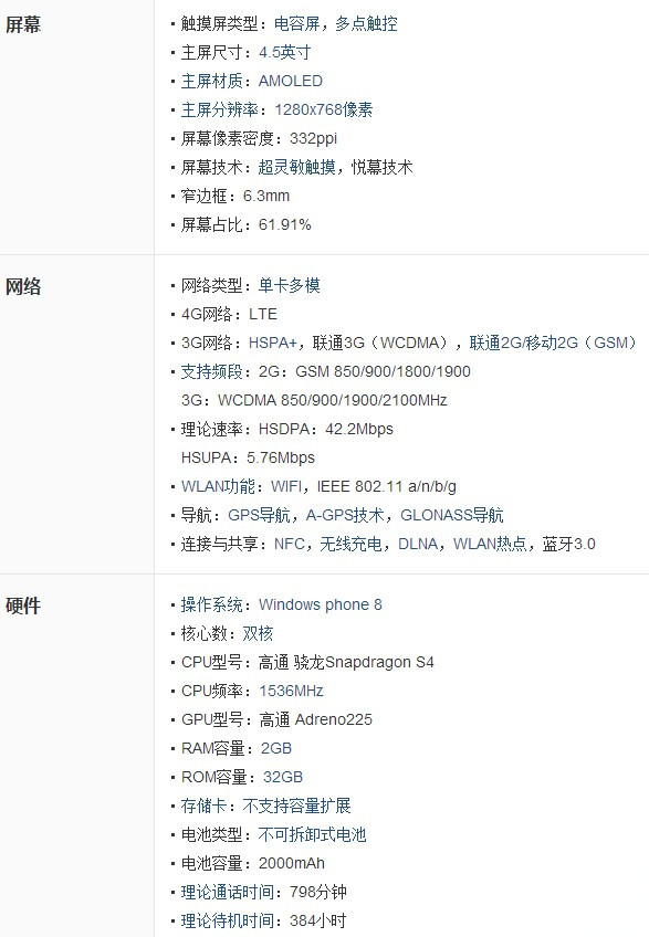 Lumia830支持WCDMA网络,采用了WP8.1操作系统,是首款内置Cortana智能语音助手的智能手机。