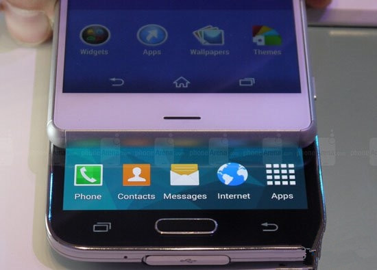 相比于Z2,索尼Z3的外观变化主要来自机身尺寸,Z3的减肥非常成功,变薄了、变矮了、也变轻了。Z3要比三星S5长一些,但机身却更窄,看上去要修长不少。相比于Z3前后玻璃面板和金属中框的一体化机身设计,三星S5那塑料感极强的电池盖实在是太过粗糙,此外对于细节的处理上三星S5也显得粗枝大叶,这一轮,起码在视觉上,索尼Z3欺负了三星S5。