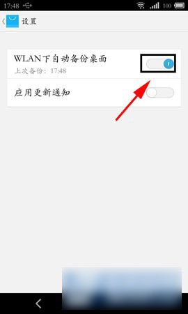 2)点击【应用中心】,点击右下角的【省略号】,进入【设置】,点击【开启“WLAN下自动备份桌面】即可。(如下图)