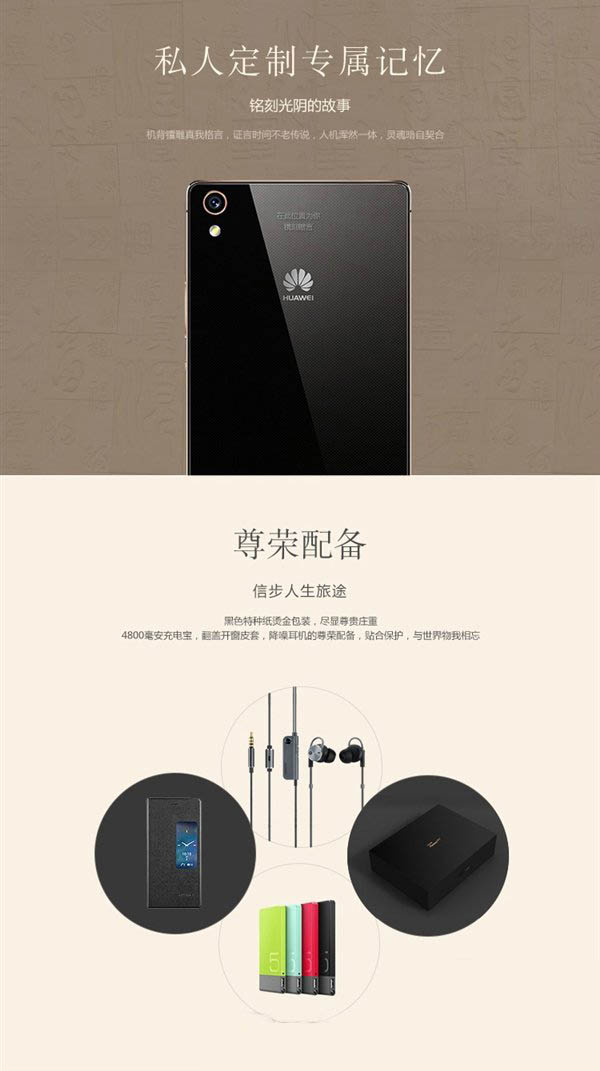 据了解,蓝宝石典藏版华为 P7 还支持个人定制,如果不出意外,应该是激光镭射雕刻服务。