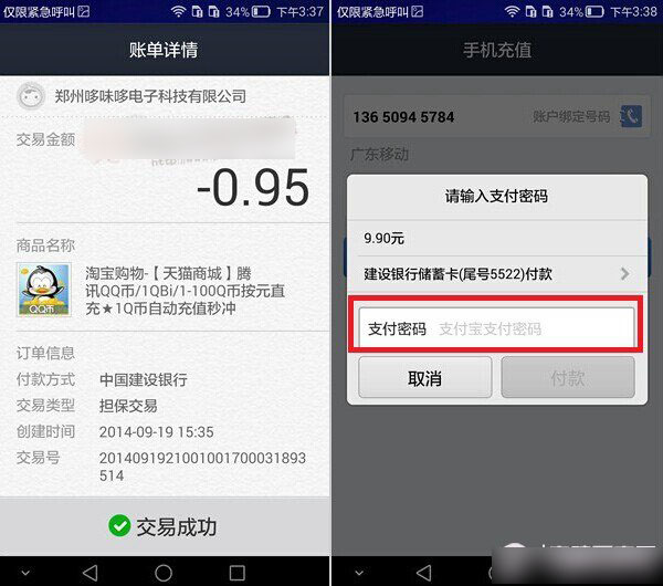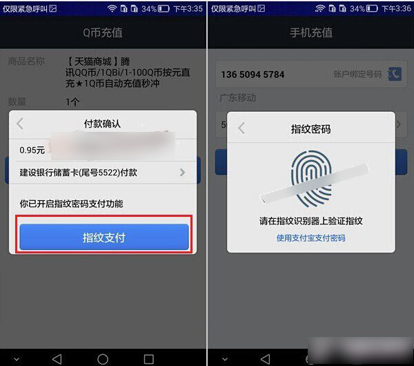 三、华为Mate7网购支付宝付款指纹支付