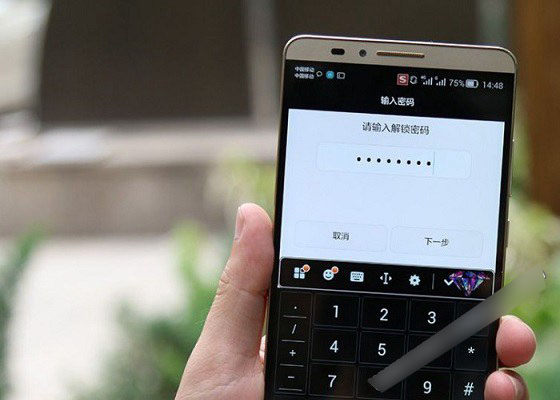 第二步:进入华为Mate7指纹识别设置后,需要先输入一次解锁密码,这个主要防止非本文进入指纹识别设置,这里需要您输入之前设置的数字锁屏密码,才能进入设置,输入完密码后,点击下一步,就可以进入指纹识别设置了,如下图所示。