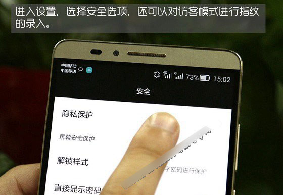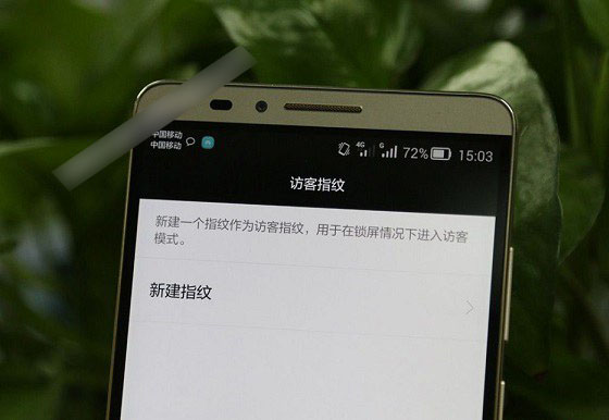 华为Mate7的指纹识别功能最多支持5个指纹录入,更有访客模式,使用场景丰富便捷。
