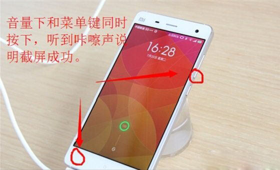 MIUI6屏幕截图快捷键与MIUI V5一样,使用的是【菜单键】+【音量下】组合快捷键,如下图所。
