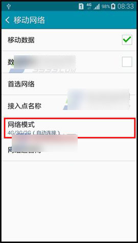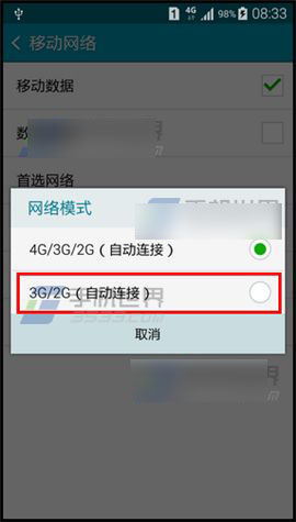 2)点击【网络模式】,选择【3G/2G(自动连接)】即可。(如下图)