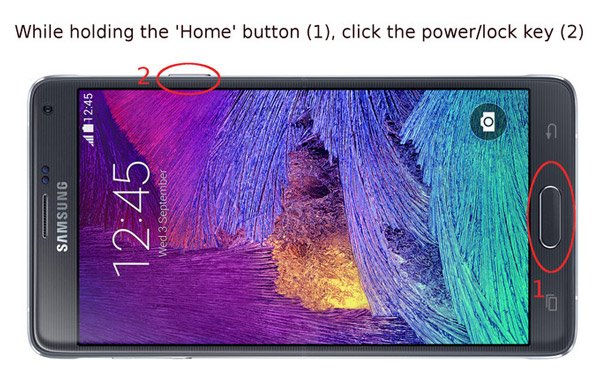 三星Note4的截图快捷键为【HOME】键+【电源键】,具体使用方法为:按住Home不放,并同时按下电源键,同时按下大约2s后,这样Galaxy Note 4的显示屏会短暂闪烁或听到类似照相的快门键的声音的时候,表明屏幕截图成功,当听到类似照相的快门键的声音的时候就截图成功,听到声音后,就可以松开按键了,然后会自动保存到手机相册中。如下图所示。