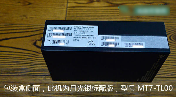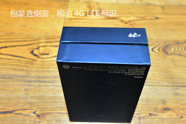 图为华为Mate 7标配版包装盒侧面4G网络标识