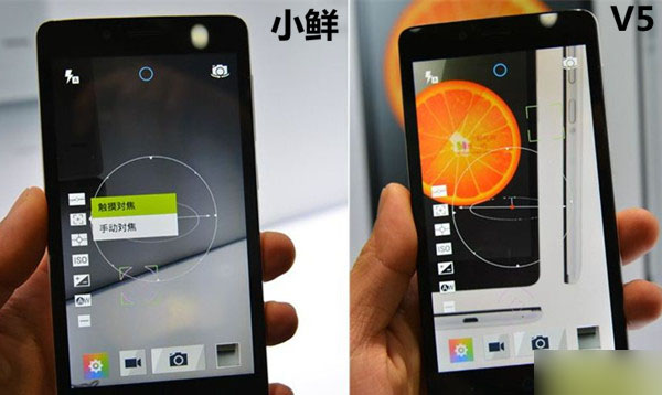 摄像头上,V5拥有前置500万后置1300万像素摄像头,而小鲜则是双800万摄像头。