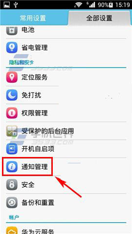 1)打开华为荣耀6的【设置】,然后选择【通知管理】。(如下图)