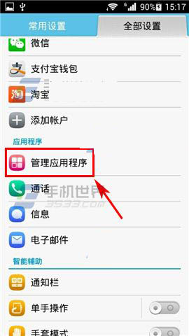 1)打开华为荣耀6的【设置】,然后选择【管理应用程序】。(如下图)