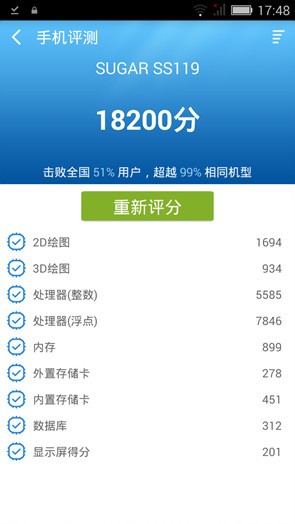 在软件配置方面,SUGAR马卡龙采用基于Android 4.4.2的定制系统SUGAR OS,从界面、色调、壁纸都具有浓郁的甜品马卡龙风格,内置丰富的智能体感功能,包括翻转延迟闹钟、双击锁屏、电源键解锁、体感拨号、免提切换、智能黑屏等。在事关运算性能的配置方面,SUGAR马卡龙采用MT6582+MT6290的解决方案,主频为1.3GHz,与之匹配的是2GB运行内存和16GB存储器,在安兔兔性能测试中取得了超过1.7万分的成绩,鲁大师跑分在1.8万分以上,满足日常应用流畅运行的需求不成问题。