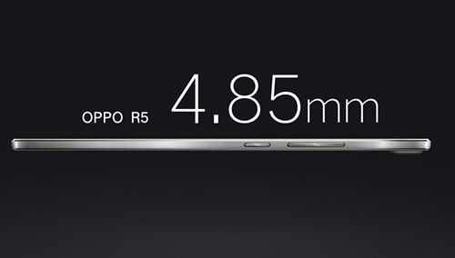 OPPO R5型号为R8107,机身厚度仅4.85mm,刷新由金立ELIFE S5.1保持的最薄记录。R5造型与前代R3十分相似,背盖为三段式设计,不过顶部塑料面板宽度比底部更宽。