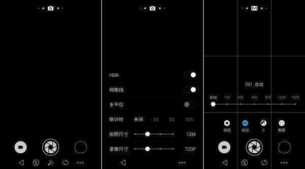 我们先来看看 MX4 拍摄界面,MX4 这次使用了较为简单的操作方式,竖幅构图时,底部中央是快门键,左边是录像键,右边是样张回放。闪光灯、滤镜效果、前后摄像头转换和菜单键都安排在最下方。菜单的选择也比较简单,里面包括 HDR、网格线、水平仪,照片和视频的分辨率大小等设计。而拍照模式则使用了左右滑动切换的方式,比较简单直观。在切换不同的拍照模式后也会有新的可调节按钮出现。例如切换到手动模式,就会出现快门、ISO、曝光值和手动焦距的调节按钮。其他模式也会出现相应的调节按钮,这一点就不详细讲述了。