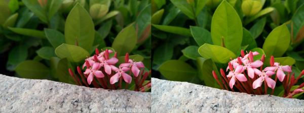 接下来我们看看 MX4 和小米 4 100% 截图对比,两者对比起来,虽然小米 4 样张的分辨率大小比 MX4 要小,但是没有 MX4 那种过度锐化的现象,反而较为顺眼一点。