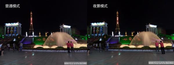接下来我们来看看两者的夜景表现如何,首先我们可以从样张信息里面看出,在光线不足的情况下,MX4 是选择保持一个较低的 ISO,而减慢快门速度,而小米 4 则是选择保持足够的快门而提升 ISO。