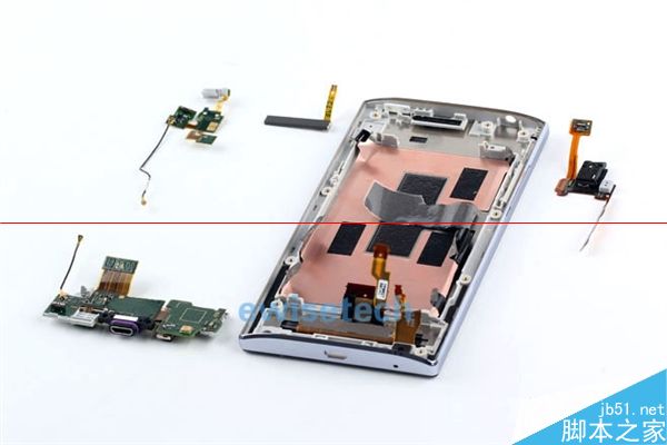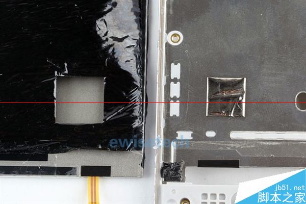 右边的方形软垫和散热石墨的方形孔对应,有两种作用,一个是当手机受到外力冲击时起到缓冲减震的作用,另一个则是支撑着屏幕面板让屏幕面板与支撑板之间留有空隙以便更好的散热。