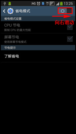 向右滑动【省电模式】的滑块,绿色代表已开启。