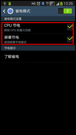 不过,还是可以利用一些小窍门提高手机的续航。比如三星手机自带有省电模式,开启省电模式可分别对CPU及屏幕的使用进行限制,从而达到节省电量的目的。