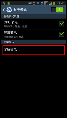 点击【了解省电】,可查看节电选项的具体含义。