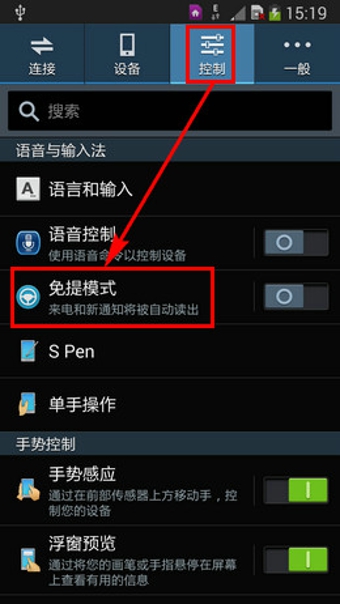 点击【控制】,选择【免提模式】。