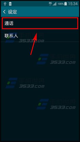 2)在弹出菜单中选择【设定】,点击【通话】进入通话设置。