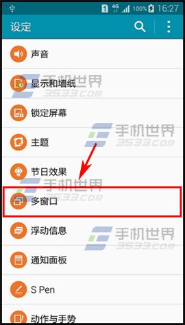 1)打开三星note4的【设定】,点击【多窗口】,然后把【多窗口】选项打开。
