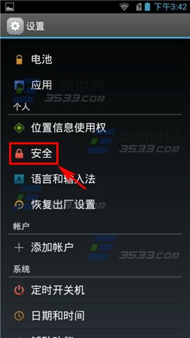 1)打开海尔6180T的【设置】,选择【安全】。