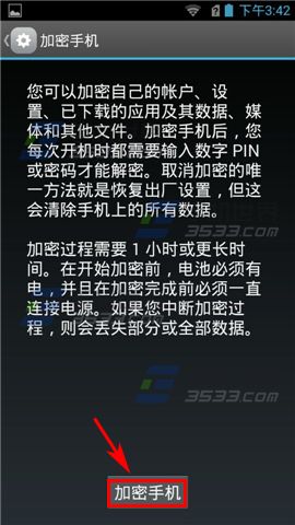 2)点击【加密手机】,把手机插上充电器处于充电状态,点击【加密手机】再按提示操作即可。
