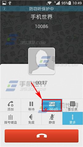 2)在需要录音的时候,点击右侧【更多】,然后点击【录音】即可对当前通话开始录音