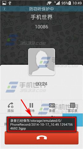 3)当录音完成时,再次点击【录音按键】结束录音,此时系统会提示录音的保存路径。