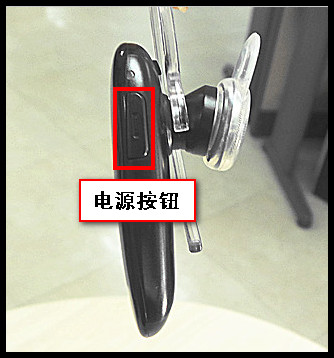 1.拨动蓝牙耳机的电源开关。(蓝牙耳机型号不同,具体蓝牙耳机开启方式请参考蓝牙耳机说明书操作,下面以三星蓝牙耳机“HM3300”为例。)