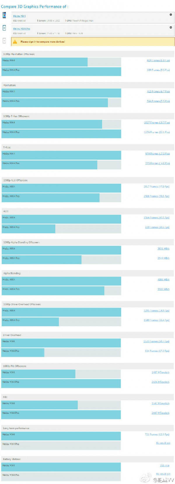 从目前情况看,MX4 Pro应该是使用了三星定制的八核处理器5430,但GFXBench显示的GPU成绩,相比LG G3简直没法直视嘛。