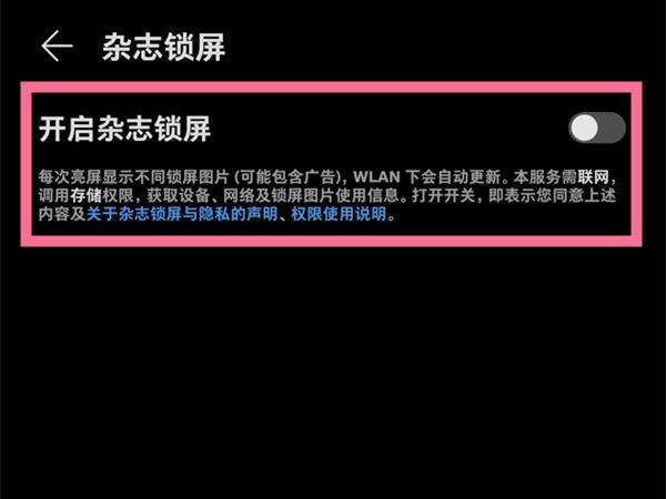 3、开启【开启杂志锁屏】右侧的开关。